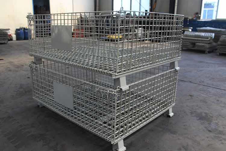 倉庫儲存籠主要原材料是高線拉成的鋼絲,一般絲徑是5mm,6mm,6.4mm。網(wǎng)片焊接的網(wǎng)目間距一般為50×100,100×100,50×50。倉儲籠底部采用U型鋼焊接而成,U型鋼是冷軋帶鋼軋機軋制而成,底部四角采用沖壓件一次沖制而成。鐵絲籠采用Q195高線作為原材料,經(jīng)冷拔成型材。再通過碰焊形成半成品網(wǎng)片。在制作成網(wǎng)片后,可采用鍍鋅或噴塑進行表面處理(鐵絲籠大多數(shù)采用鍍鋅處理),表面處理完畢后就可以進行組裝,即可制作成成品。