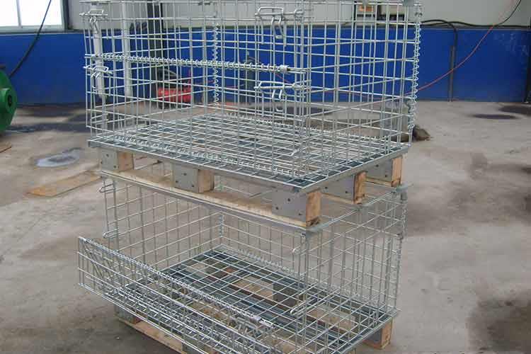 木托倉儲籠的主要材料為低碳鐵絲、槽鋼、熱軋鋼板等。該倉儲籠的外形非常的輕巧,籠體除底框外皆有鐵絲碰焊成的網(wǎng)片組合而成,網(wǎng)片與網(wǎng)片、網(wǎng)片與底框靠小連接件連接,可活動。在木托倉儲籠空籠時可折疊存放,充分利用空間。同時倉儲籠前面可打開,在堆垛后能取物,堆垛時承重在側(cè)面的網(wǎng)片上。