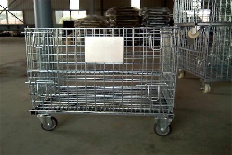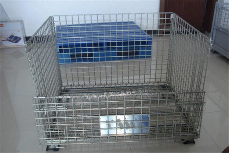 2、空的倉庫儲存籠折疊存放時折疊方式為展開方式程序的反向操作,折疊后的儲存籠可堆垛存放,須注意的是折疊后的儲存籠堆垛應正反相對放置,不能90°交叉放置,堆放高度不超過1.2M,并用鐵打包帶打包,以增加存放的保障性。